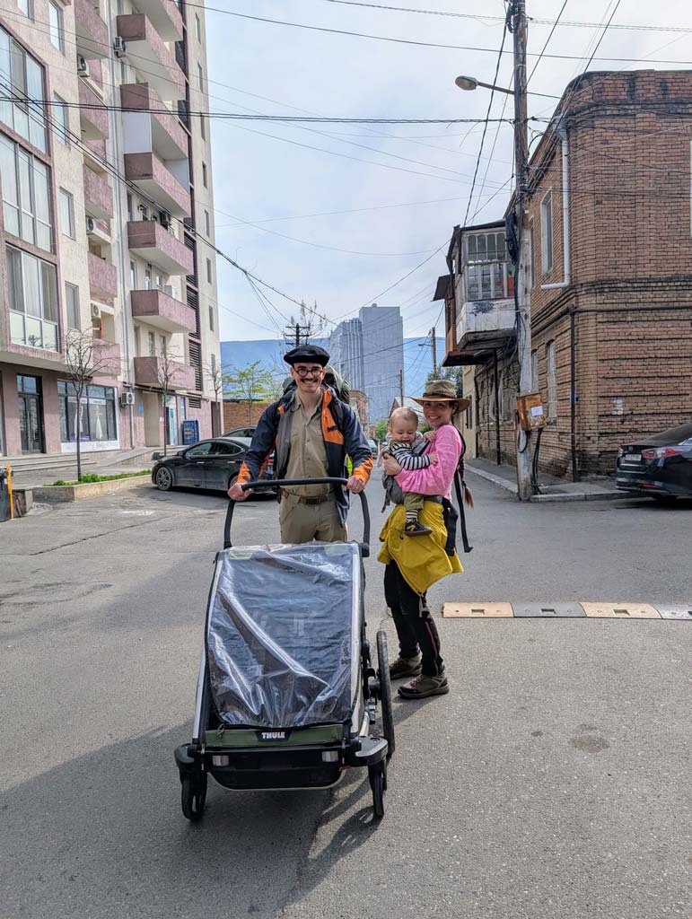 Pendant ces déplacements dans la capitale géorgienne et ces événements, Justine a porté Homère dans le Boba Air, un porte-bébé ultra léger d’excellente facture. Avec ses 400g, il se glisse dans nos sacs de randonnée sans se faire sentir et une fois déployé sa structure physiologique assure à Homère un portage réconfortant, au plus proche de sa mère.
