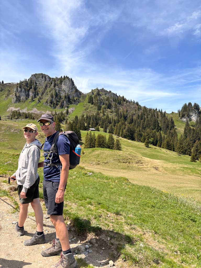 Cette fois-ci, pour la première fois, je me suis entièrement laissée guidée par mon conjoint. On avait 4 jours devant nous, 4 jours avec un ado de 14 ans, Loïc. Ma fille, Suzie, avec qui j’ai l’habitude de barouder, profitait de son papa. J’étais enceinte de 5 mois et demi. J’avais envie de grand air, de belles et grandes montagnes et d’une vue dégagée. La Suisse Allemande nous a paru être la meilleure idée. Nous y sommes en moins de 4 heures et Lionel est un amoureux de ce pays!