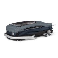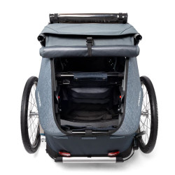Les fenêtres latérales sont également dotées d'une protection anti-UV. Votre enfant peut contempler la route qui défile sans s'abîmer les yeux ! Mais ce n’est pas tout ! La Croozer Kid Vaaya 1 est pourvue d’un coffre à fermoir magnétique. Ce grand espace de rangement possède une capacité de 43 l. Sa fermeture silencieuse préserve le sommeil de votre enfant durant sa sieste. Vous pouvez donc charger ou décharger vos bagages sans avoir besoin de claquer le coffre et faire sursauter votre bambin.