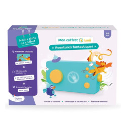 Le coffret Ma Fabrique à Histoires Aventures Fantastiques - Lunii est une version enrichie de la célèbre conteuse. Déjà remplie d’histoires et livrée avec un carnet d’activités, cette édition complète permet aux enfants de plonger immédiatement dans l’aventure, sans écran ni achat supplémentaire.