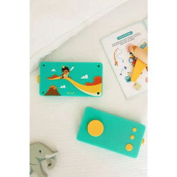 Ce que nous aimons dans cette conteuse audio enfant, c’est son côté généreux : un coffret complet, déjà prêt à fonctionner, sans avoir à acheter d’histoires en plus. L’enfant peut écouter, créer et rêver dès la première utilisation. C’est un vrai compagnon d’imaginaire, évolutif et durable, qui grandit avec lui.