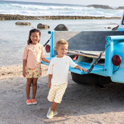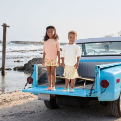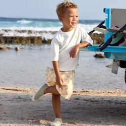 Une coupe de surfeur, une ceinture élastique et un cordon pour ne pas qu’il tombe, un tissu qui sèche très vite… le short de bain enfant Lassig va vite devenir l’indispensable de votre enfant cet été ! Et comme toujours avec Lassig, des accessoires qu’on peut assortir et des matériaux recyclés.