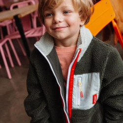 Avec ses deux poches mains et sa poche poitrine zippée, cette polaire allie look et praticité. La poche sur la poitrine apporte une touche moderne et craquante, tout en restant utile pour glisser un petit objet. Les passe-pouces maintiennent les manches en place et gardent les petites mains au chaud quand on enfile un manteau par-dessus. Son col montant et sa doublure polaire offrent une chaleur enveloppante, tandis que le tissu certifié OEKO-TEX® garantit un vêtement bon pour la santé des enfants et plus respectueux de l’environnement.